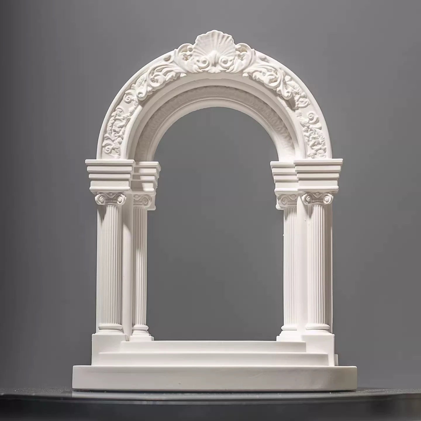 An elegant white relief arch design, ideal suited for displaying "Saint Seiya" figures. It can also serve as a stylish cabinet decoration.
