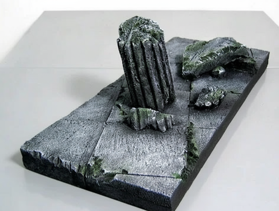 The complete scene is composed of five separate sections: three bases, the group of columns on the left, and one column on the right. Each part is available for separate purchase, allowing for easy and customizable arrangement.
